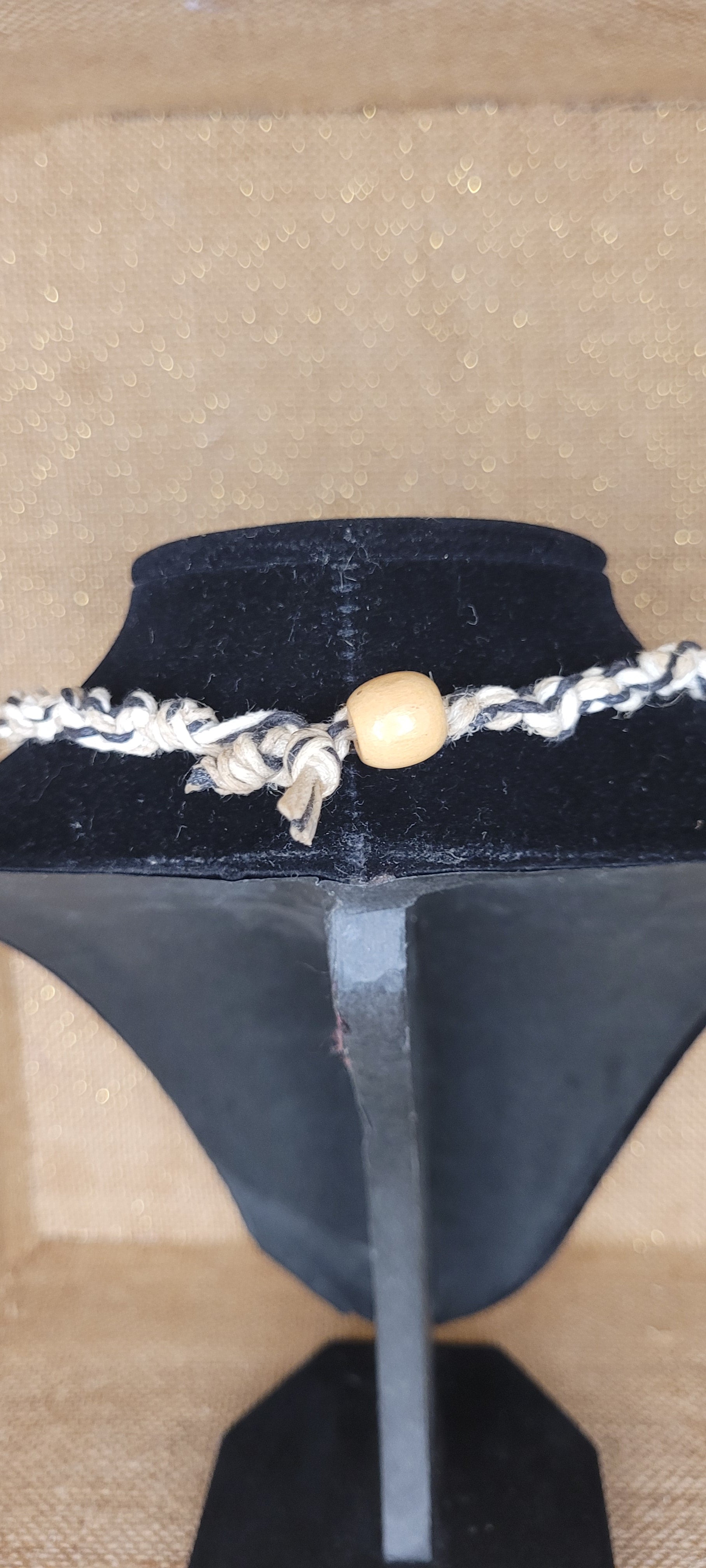 Enhancing the design, two small, polished glass ball beads are meticulously integrated into the weave, flanking the bail of the pendant to draw the eye. The necklace is secured with a practical bead and loop connection, ensuring ease of wear and removal. For guaranteed longevity and to maintain the integrity of the hand-woven structure, the rope ends are expertly glued and sealed.