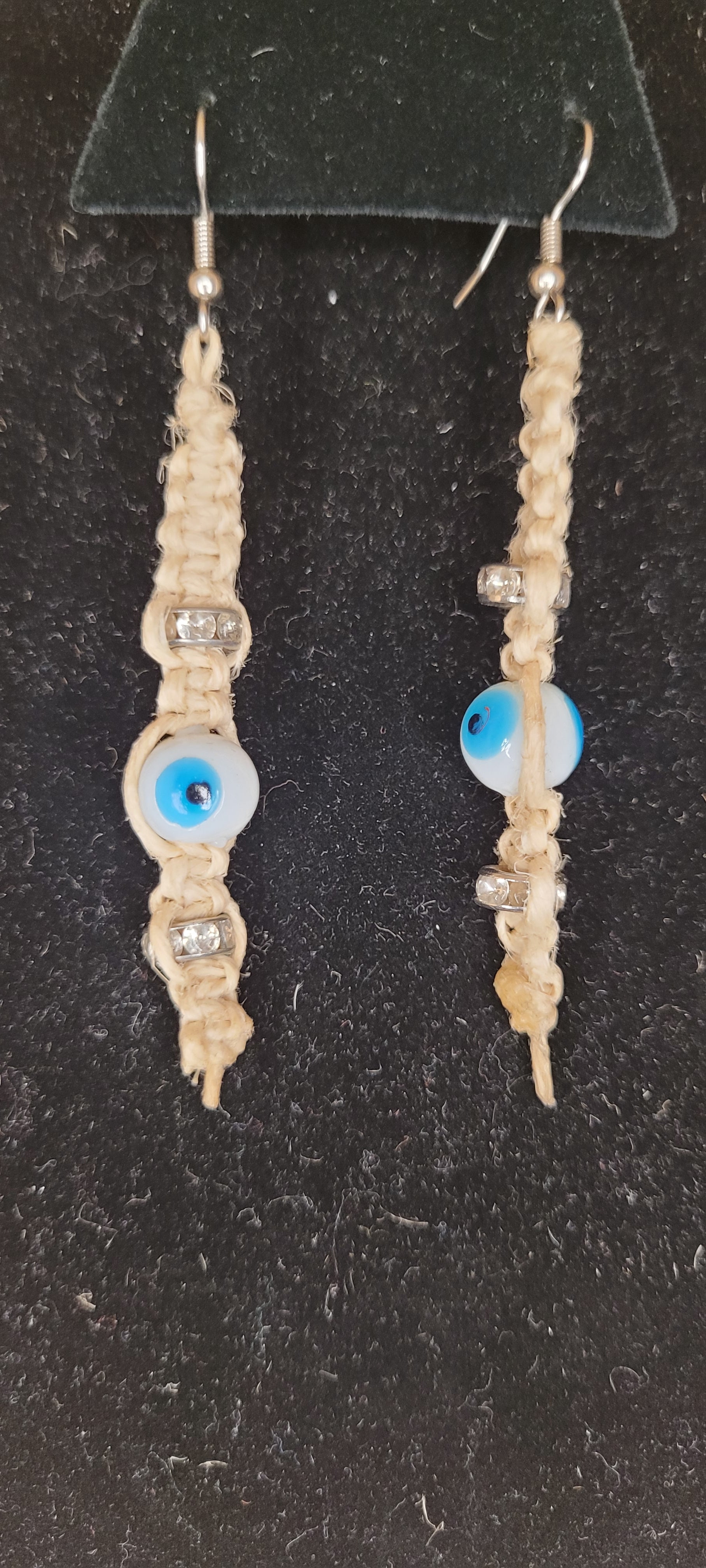 Handcrafted Evil Eye Macramé Hemp Dangle Earrings