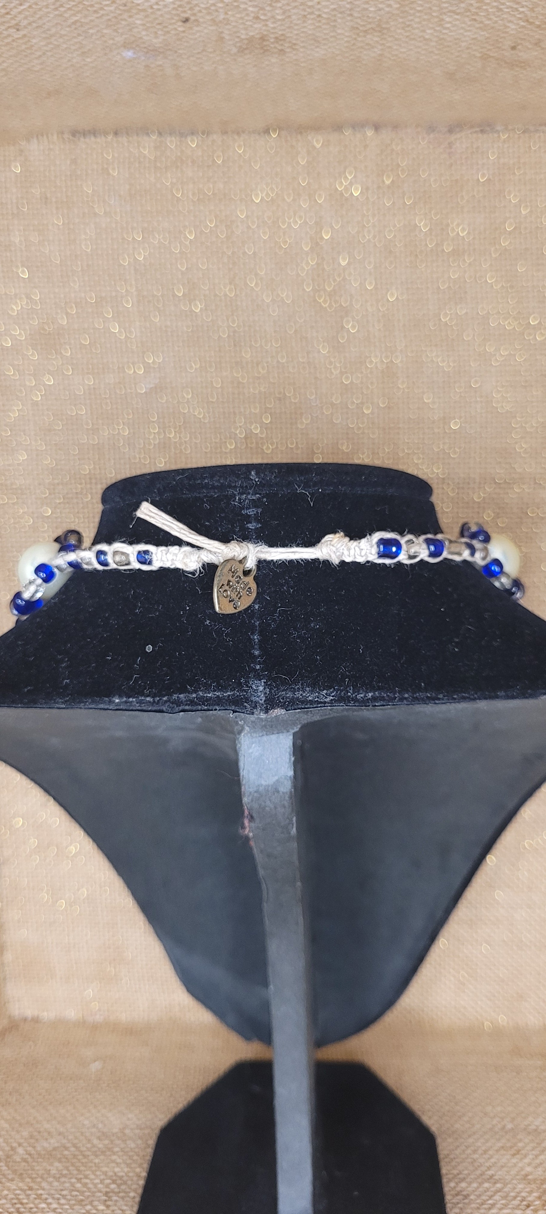 This elegant artisan choker combines the natural texture of hemp with the classic beauty of beads and pearls, creating a sophisticated yet handcrafted statement piece.